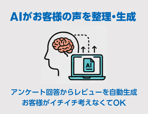 ②:AIがお客様の意見をキレイに整理 → レビュー文を生成