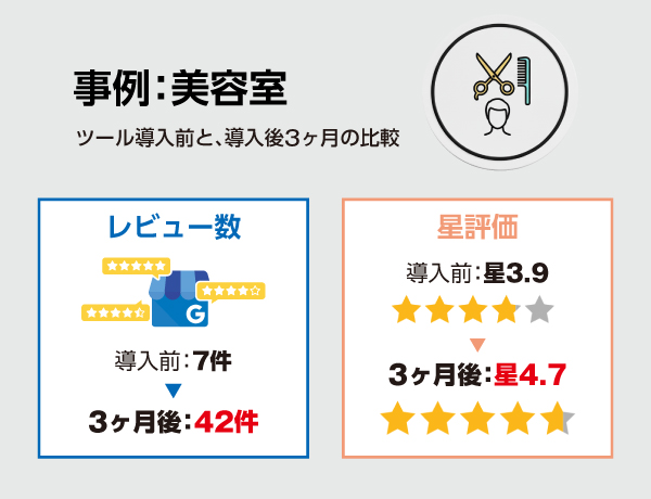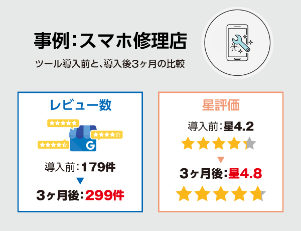 このツールを使うことで、多くの事業者さまがGoogleレビュー収集の苦労から解放されて、Googleを集客の味方につけ、安定した売上ベースを構築しています。