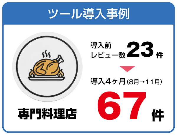 実際効果は出ていて、導入2〜6ヶ月ほどで格段にレビュー数が増加。