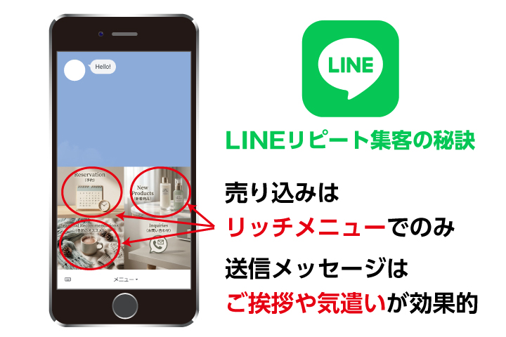 LINEリピート集客のポイント②:「売り込み」はリッチメニューに配置